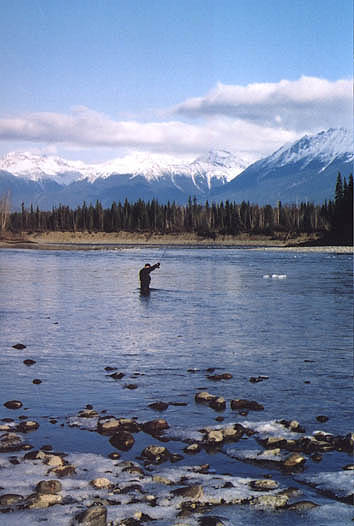 The Last Words I missed some fishing friends that usually drop by and spend some time in the "Heritage cabin." Tom Knopick and John Flick were missed; hopefully they will be back in the future. However, as always, Will Blanshard's presense was welcomed. We always seem to find some adventure to get ourselves into, be it hiking into some remote part of the watershed, pulling trucks out of the muck, shuttling for each other; just all of that stuff that makes up the adventures of a season. Having Will along, or just back at the cabin at the end of the day really helps me keep my humour throughout the season, especially one like this. Also a special thank-you to Pierce Clegg for inviting me out to his camp on the Babine. It had been seven years since I last was there and it meant a lot to me to reconnect with that river where I learned my rivercraft. It was great to see Darcy, Gary and the "gang". What a great way to unwind after my season here, I hope to do it again one day. What a great few days those were . . . Thanks also, as every year, to my friend Bob Clay for the river access allowing me to put in and take out on his property. Of course, tons of thanks, love, and caresses to my beautiful wife Kathy who runs the show back at the house, and guesthouse, and as always pulls it all off with flying colours; managing the housekeeping, either doing it herself or |