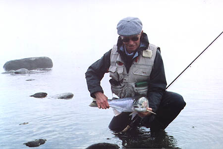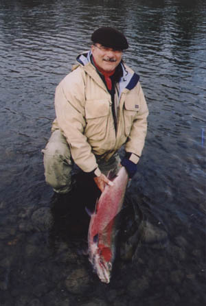 | And how big was that fish? Well we will never know will we? We really never did get a good look at it; but I am confident that we had another of the huge, huge fish that were in the river this year. I am saying minimum that fish was high twenties; and more likely another 30 lb + fish. That's pounds, not inches, centimeters or kilograms. But who knows . . . the big ones often seem to get away, don't they? | ||||||||||||||||||||||||||||||||||||||||||||||||||||||||||||||||