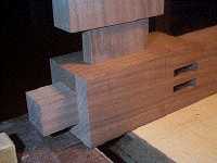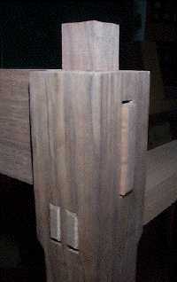 2: A view of the outside corner of the top of the post, showing the newly fit tenons.