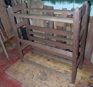 2: One frame, with all rails in place. Except for a some small things like sawing the kerfs for the wedges, all of the mortice and tenon work is now done.