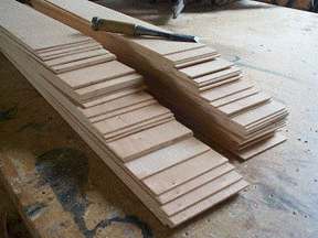 1) Shows all the lamination layers ready for the glue-up, there are eight per lamination for this, to make a total of 7/8" total thickness for the rail