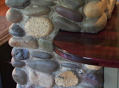 A small detail showing the counter where it meets the river rock chimney. A little planning ahead during the laying of the rock-work allowed for a relatively easy job of combining these two things.